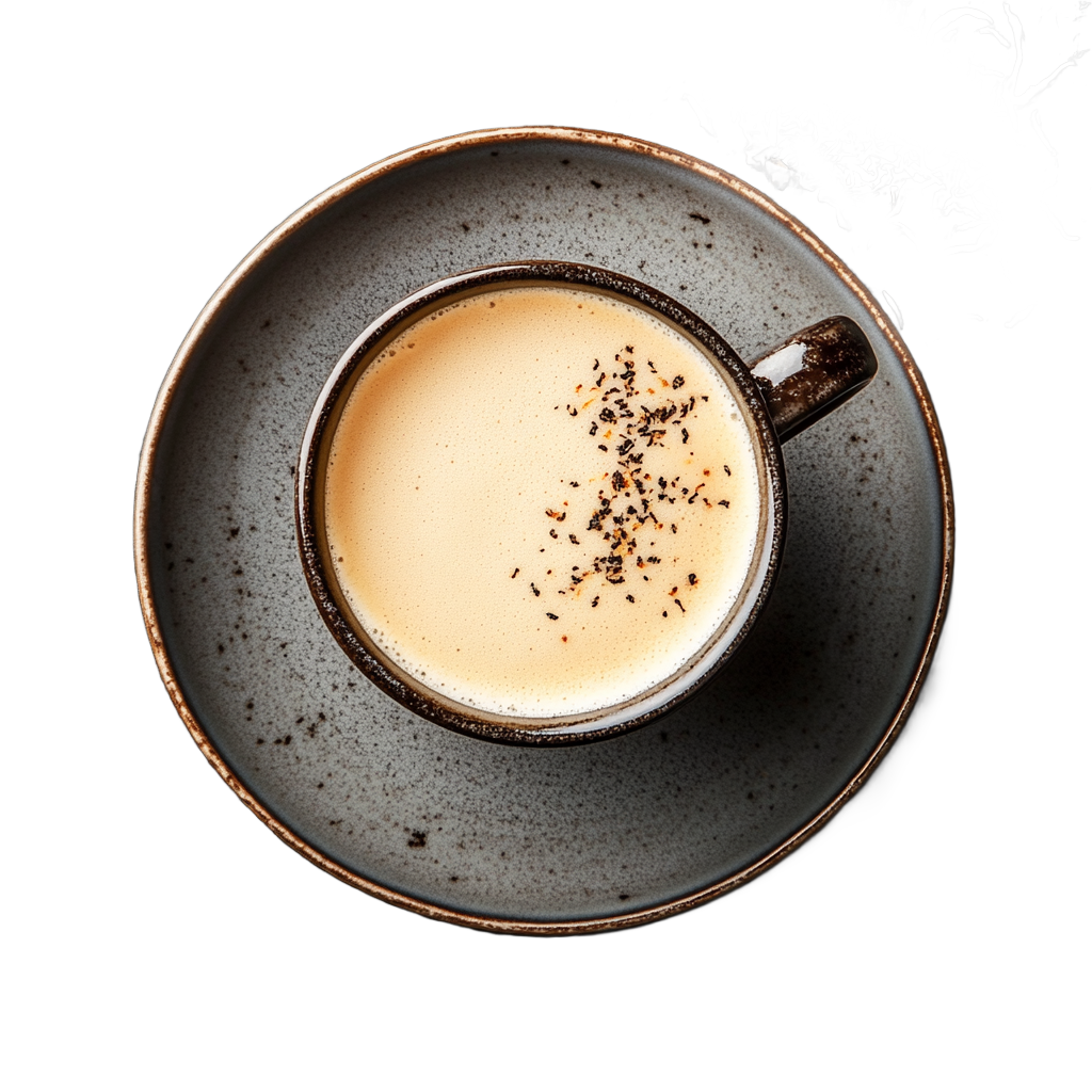 Té Latte suave y reconfortante, infusionado con té a elección y leche cremosa.